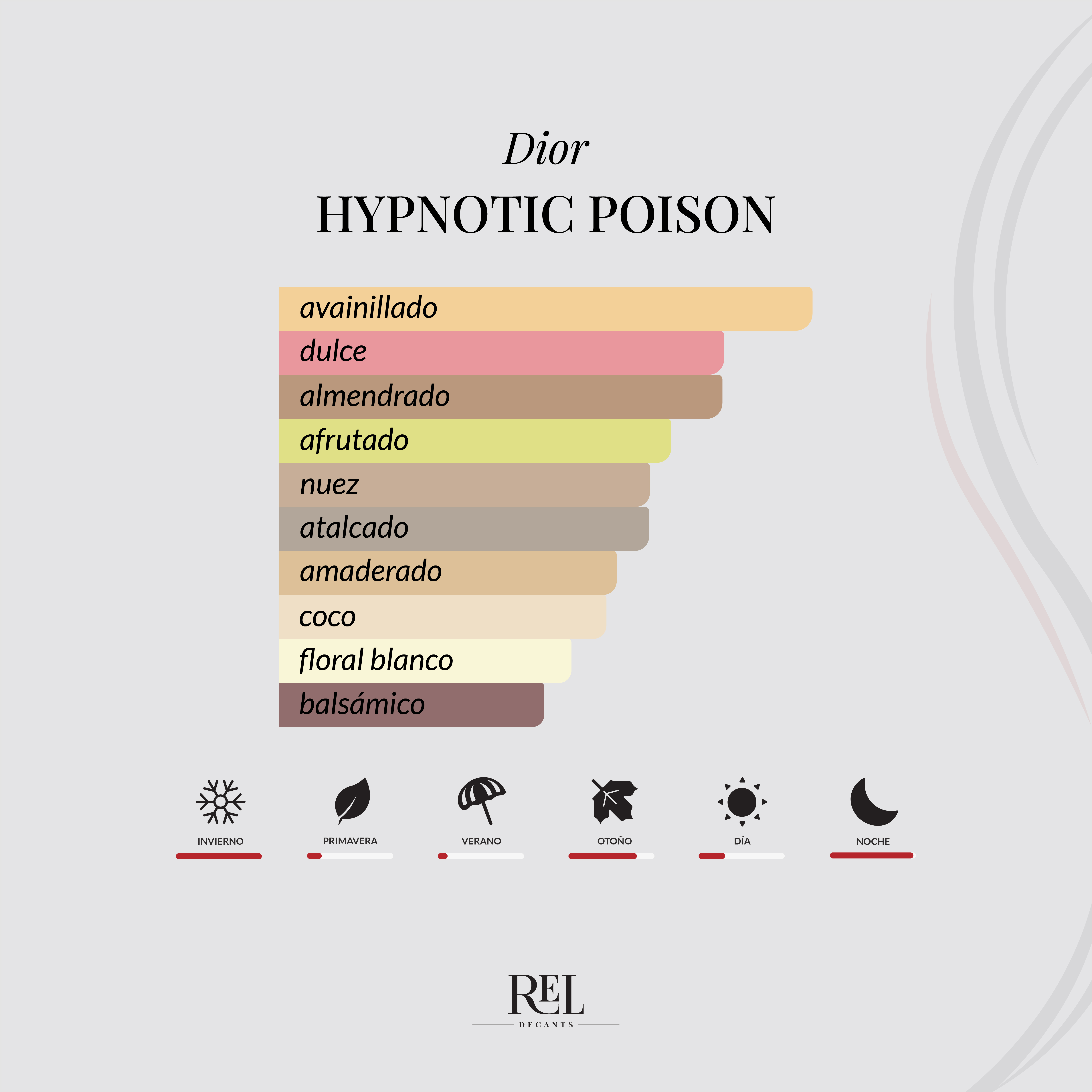 Hypnotic Poison de Dior es una fragancia oriental vainilla femenina, lanzada en 1998, que se convirtió en un verdadero clásico por su perfil dulce, oscuro y extremadamente sensual. Es un perfume intenso, envolvente y muy distintivo, ideal para quienes buscan dejar huella.