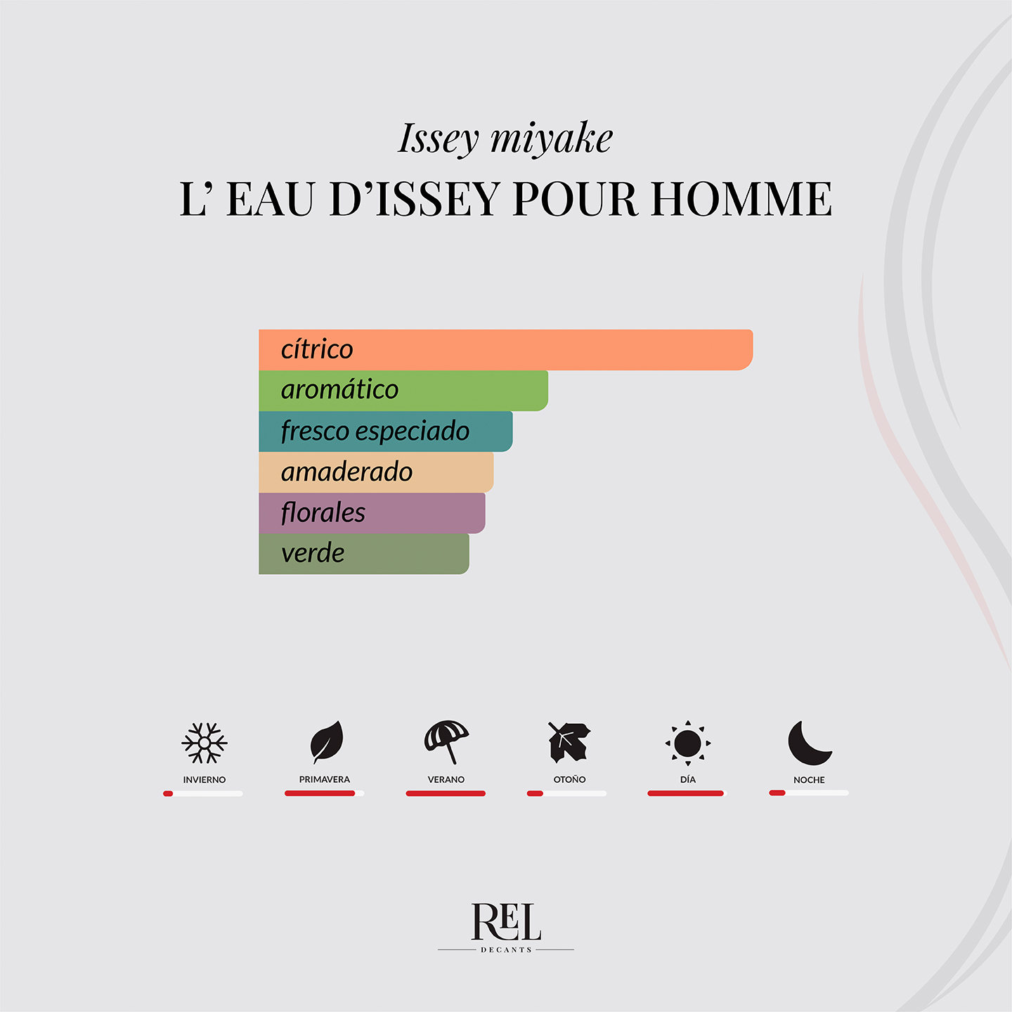 L’Eau d’Issey Pour Homme está inspirado en la pureza del agua, buscando representar una fragancia fresca, natural y atemporal que combine simplicidad con elegancia moderna.