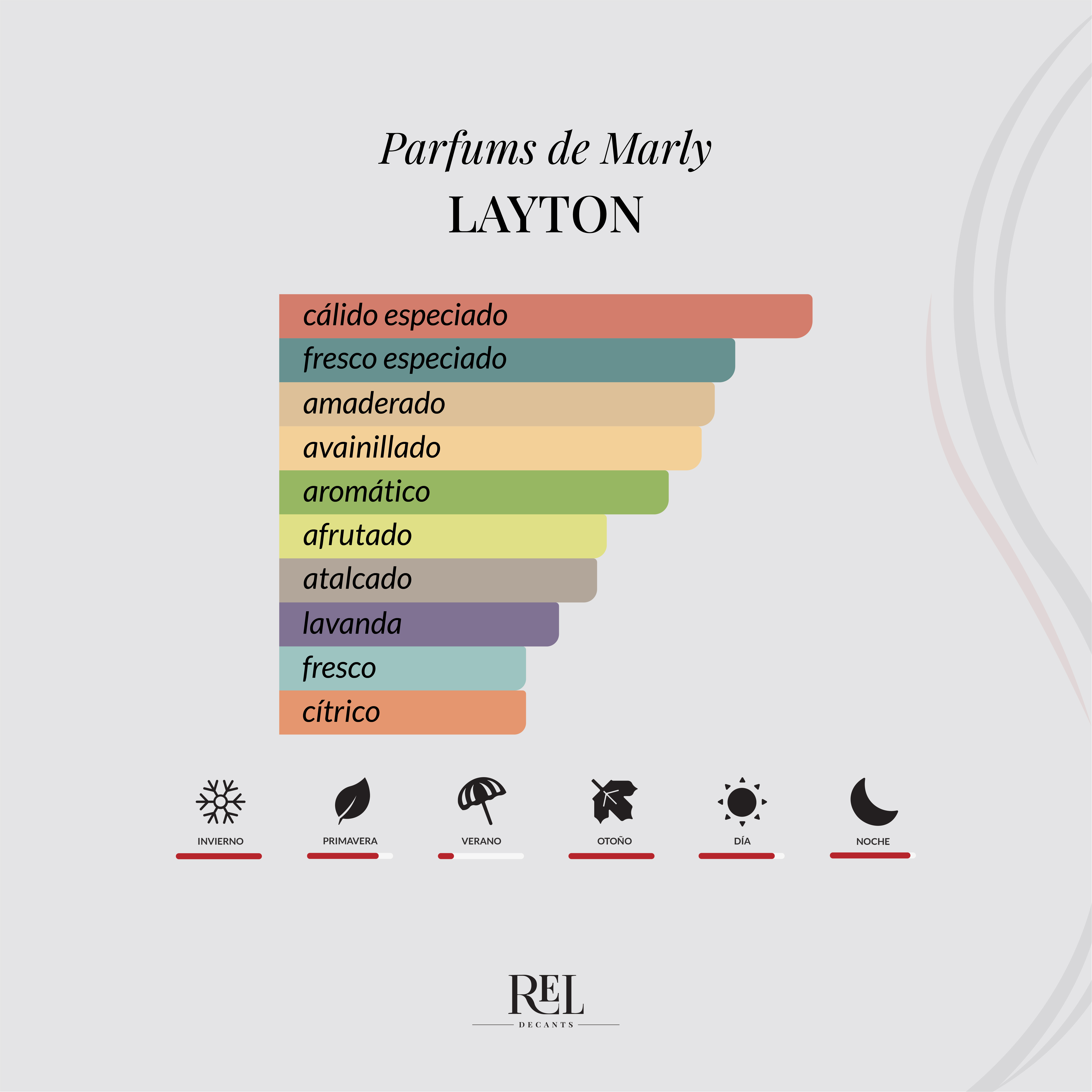 Layton de Parfums de Marly es una fragancia oriental floral amaderada unisex, lanzada en 2016, considerada una de las más icónicas del mundo niche. Destaca por su perfil dulce, especiado y elegante, con un equilibrio perfecto entre frescura y calidez que lo hace extremadamente versátil.
