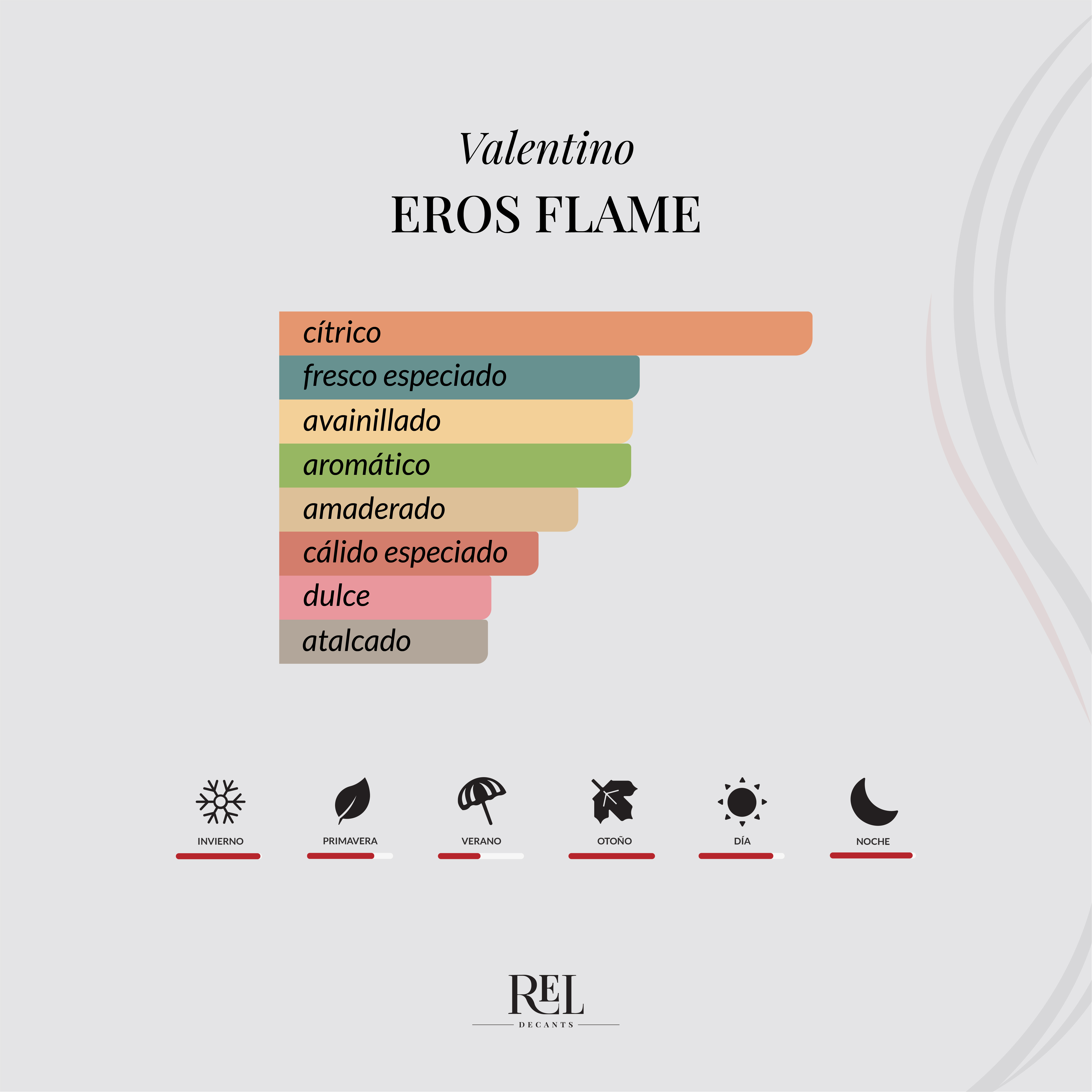 Eros Flame Eau de Parfum de Versace es una fragancia amaderada especiada masculina, lanzada en 2018, que destaca por su perfil cálido, cítrico y dulce con un carácter más maduro que el Eros clásico. Es un perfume intenso, elegante y muy seductor, ideal para destacar en salidas o climas frescos.